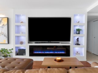 Inclus : TV salon 86", foyer électrique, réfrigérateur 2024, cuisinière 2024, lave-vaisselle 2024, laveuse et sécheuse 2022, auvent rétractable motorisé sur la terrasse, système d'alarme relié au bâtiment (sans contrat), double store sur mesure enrouleur motorisé intelligent avec télécommande, stores occultants et filtrant la lumière X 9 2024, luminaires, tringles, prise électrique pour auto (220V) (7KW) (32AMP) garage (plus des inclusions voir Addenda)