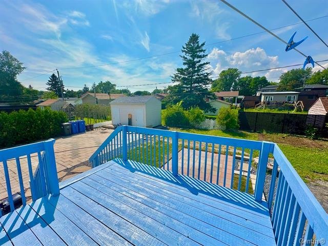 Cour arrière avec remise pour rangement supplémentaire.